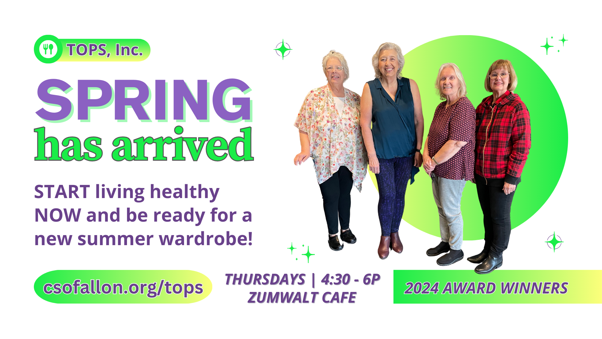 All are invited to come see what TOPS is all about! You can even bring a friend or a neighbor. It’s a great chance to get inspired and connect with others on the same journey. Come check it out! They meet every Thursday from 4:30-6p in the Zumwalt Cafe of Cornerstone UMC. For more information visit csofallon.org/tops.
