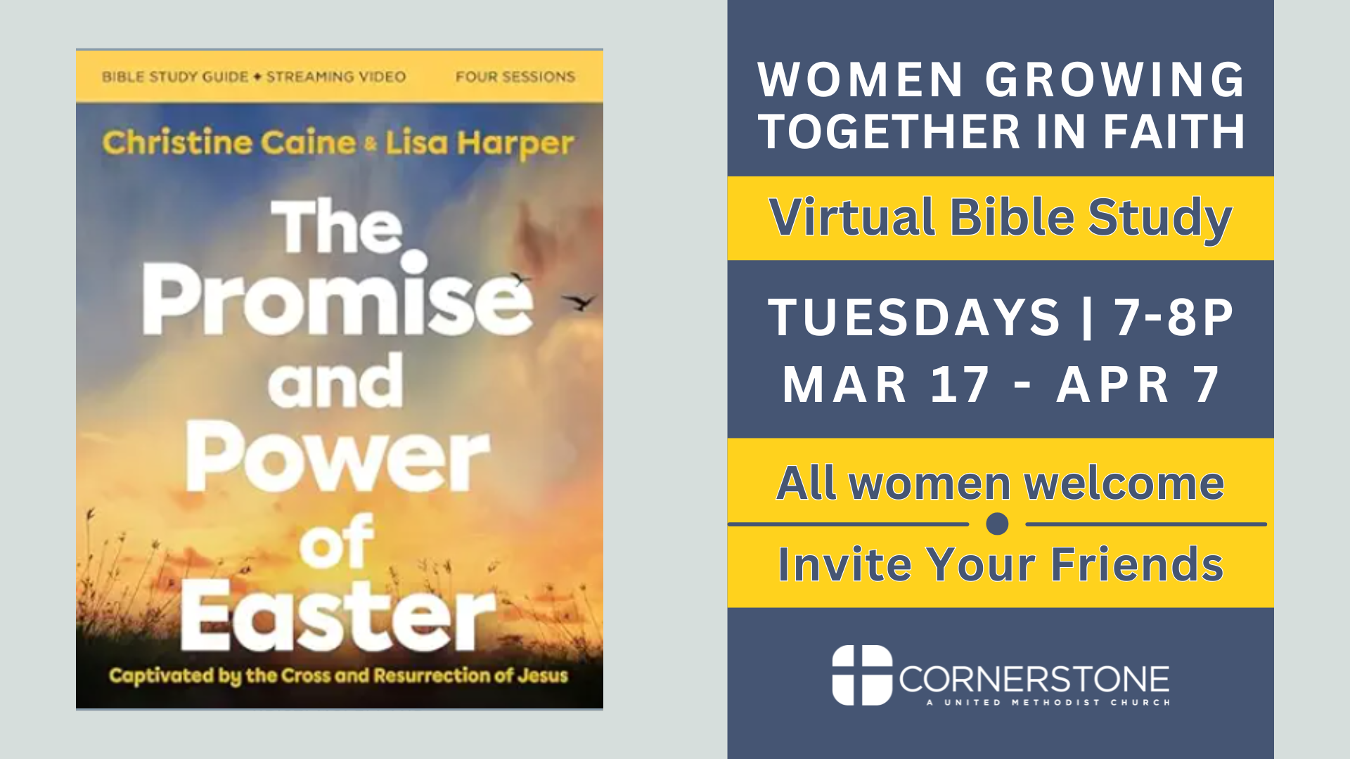 Ladies, join Women Growing in Faith every Tuesday evening for a 7-week online Bible study starting Tuesday, March 17, from 7-8P. Participants are welcome to log in as early as 6:30 for prayer and sharing.
